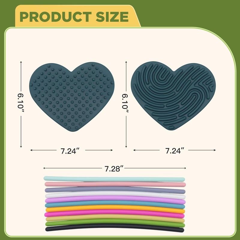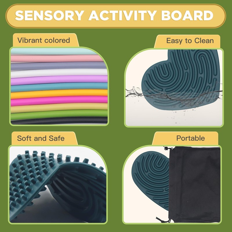 Sensory Activity Board Silicone Fidget Toy for Kids 3+ & Adults Double-Sides Design Sensory Toy for Stress Relief, Autism, ADHD and Calming with 11 Strings(Dark Green/Heart-Shape)