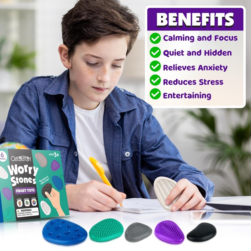 - Quiet Fidgets for Office & Classroom: Palm-sized worry stones fit seamlessly in one hand, enabling discreet stress relief anywhere. Library-quiet fidgets won't even make a slight scuffling sound while playing. Ideal for offices, classrooms, or shared spaces without disturbing others. The subtle hand motions enhance concentration—perfect for high-pressure deadlines or presentations