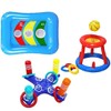 - ✔What You Will Get? 1. Floating Pool Basket ball Hoop Game: Including 1 hoop equipped with 3 ring receptacles, 1 basketball 2. Inflatable Pool Ring Toss Game: Including 1 inflatable cross and 4 rings 3. Bean Bag Toss Floating Water Corn hole Game: 1 inflatable floating cornhole for the pool and 3 water bean bags