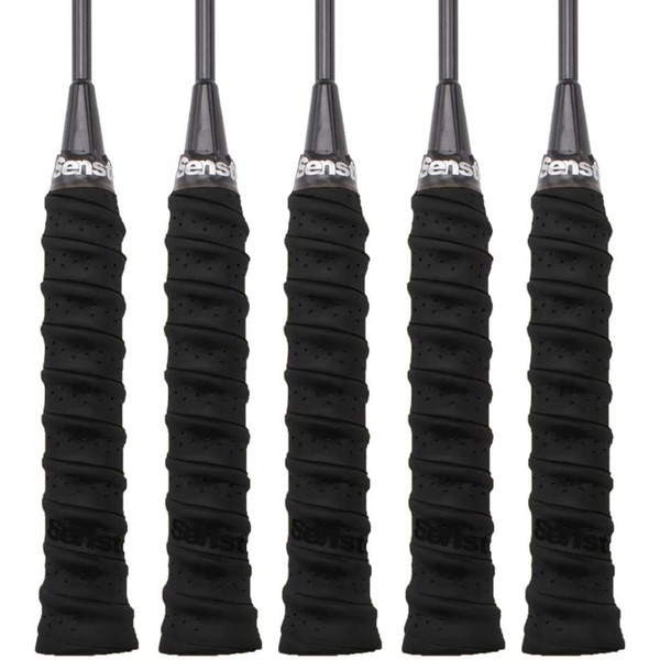 Senston 5 Pack PU Racquet Grip Tennis/Badminton/Squash Anti Slip Perforated Super Absorbent Overgrip, Pack Of 5 (Black)