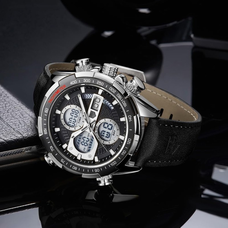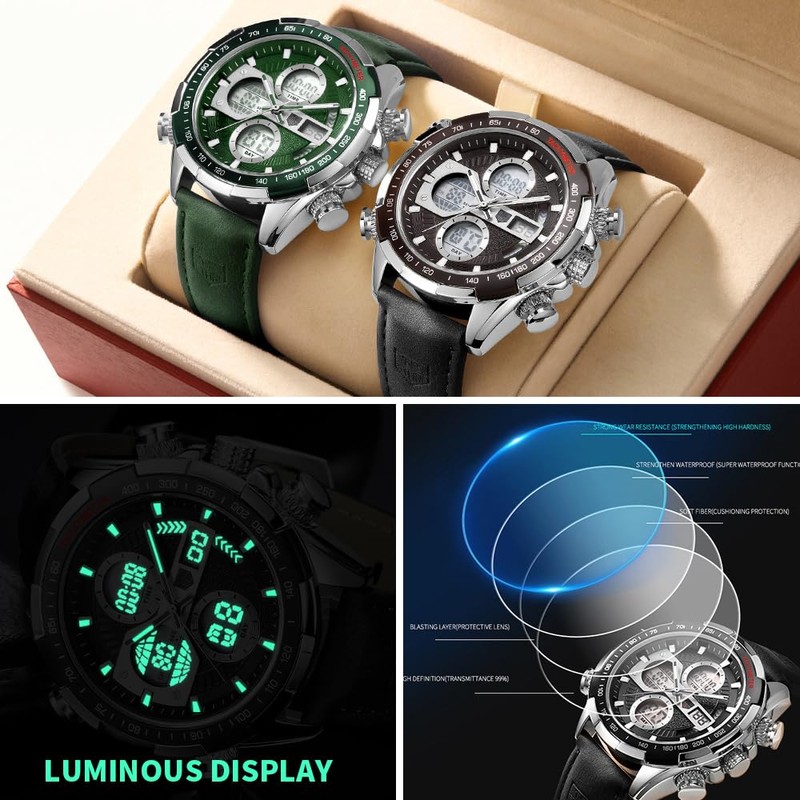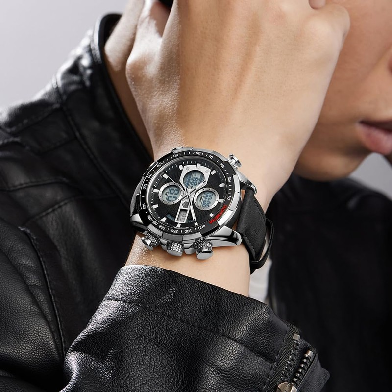 senstone Mens Watch LED Digital Analog Dual Display Dial 45mm Big Face,Leathe...