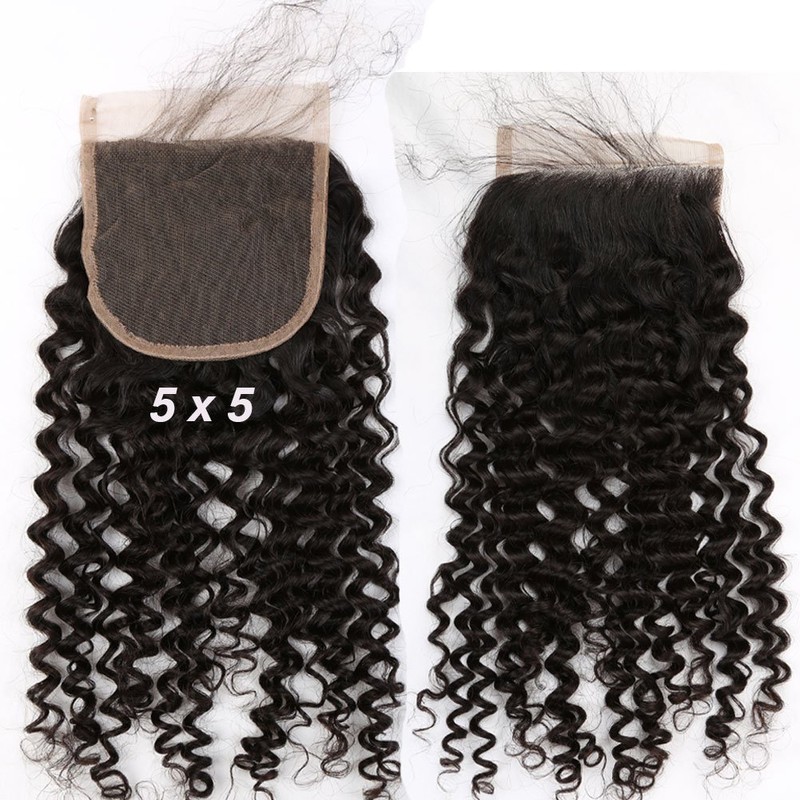 Sent Hair 5 x 5 de pelo rizado con cierre de encaje, cabello humano con pelo de bebé última intervensión parte de pelo virgen cierre de pelo color natural, Free Part, 12 inch 5x5 Curly Wave Closure