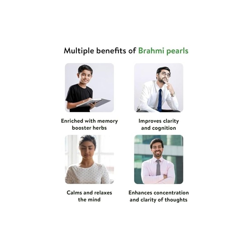 - Calms and relaxes the mind- Ayurvedic Brahmi Pearls also help maintain a calm and more relaxed mind to achieve peak performance at work and study