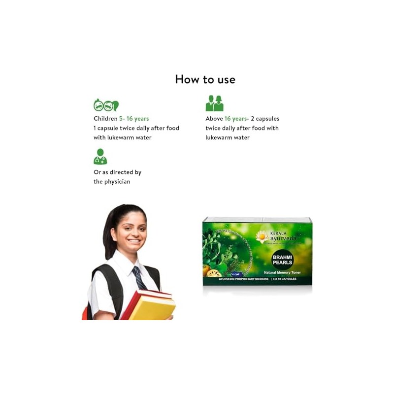 - Improves clarity and cognition- Apart from enhanced cognitive functions, if you wish to achieve effortless focus, lift the brain fog, and enhance mental clarity and creativity, Kerala Ayurveda Brahmi pearls can be a great addition to your daily life