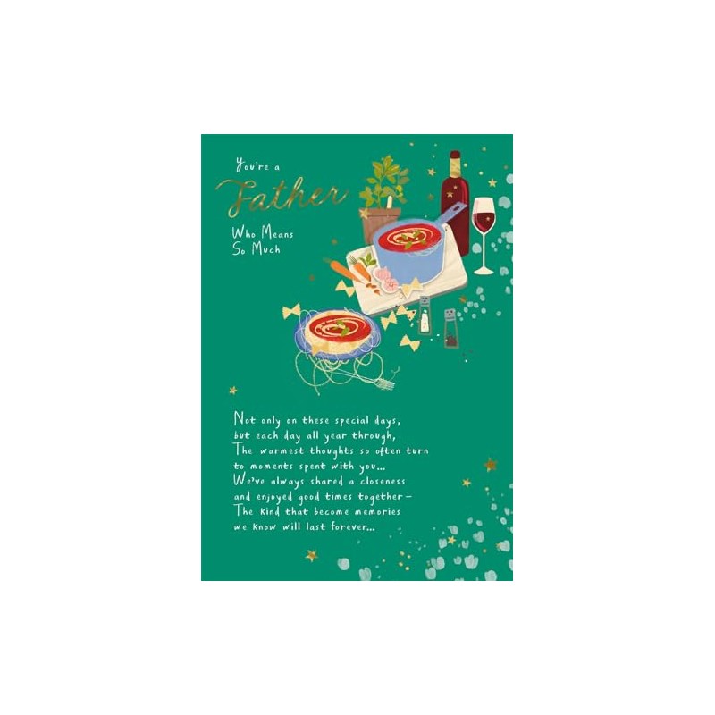 Sentimental Father's Day Card with Food and Wine Design, Special Message for Dad