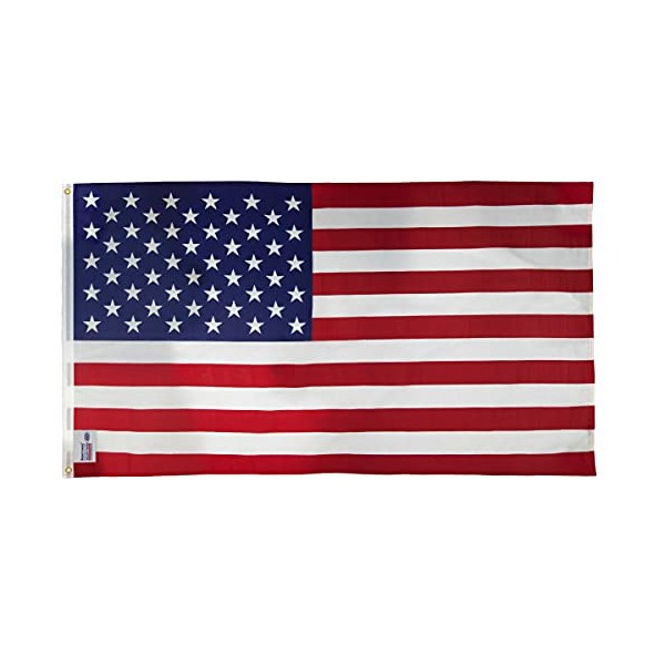 This 3' x 5' American flag by Valley Forge is made of woven polycotton (70% polyester and 30% cotton). Our Sentinel polycotton fabric dries quickly and is very light weight. This flag has been tested for its strength, durability, lasting color, & fly ability. With its traditional look & feel, this flag is suitable for any flag-flying holiday. Valley Forge is proud to make FMAA certified flags. U.S. law requires every American flag to be labeled with its country of origin. Look for the Certified Made in U.S.A. label, which verifies that your flag has been made in the United States with materials that are domestic in origin & that all processes in every step of its manufacturing were completed in U.S. facilities with U.S. labor. Valley Forge stands behind its promise to ensure domestically made products. This flag measures three feet by five feet, making it ideal for a five foot or six foot residential flag pole. On the left edge of the flag are two grommets made from brass. These durable grommets can be used to securely attach your flag to a flagpole. This printed replacement flag features a white canvas heading and is constructed with a double stitched reinforced fly-hem with a single stitched top and bottom hem. This product is created from our most economical material and is best suited for indoor decoration or occasional outdoor residential use.