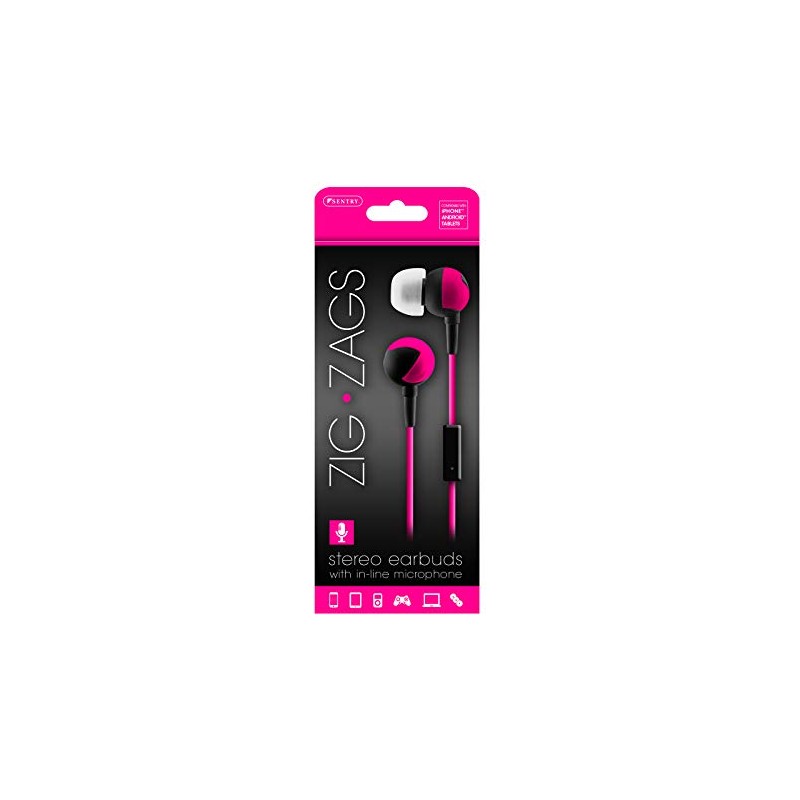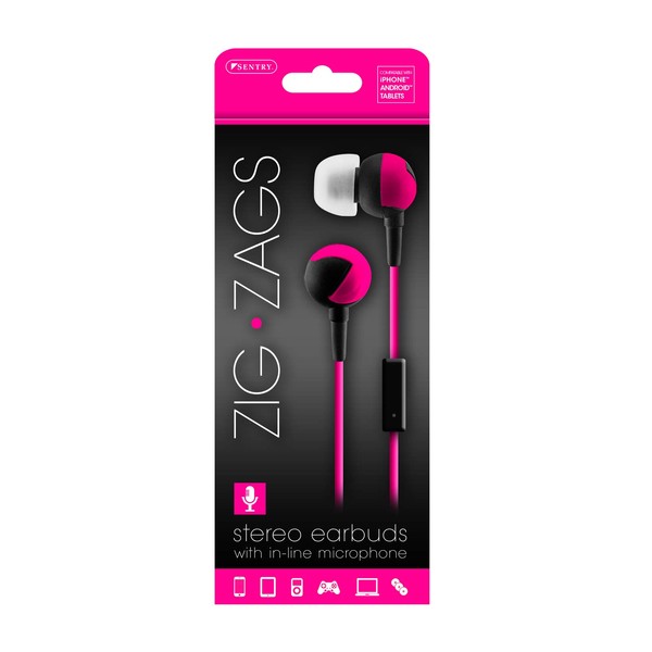 SENTRY HM363 ZIG-ZAGS EAR BUDS WITH IN-LINE MIC PINK BLACK