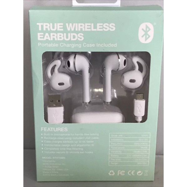 Sentry True Wireless Earbuds With Portable Charging Case, White