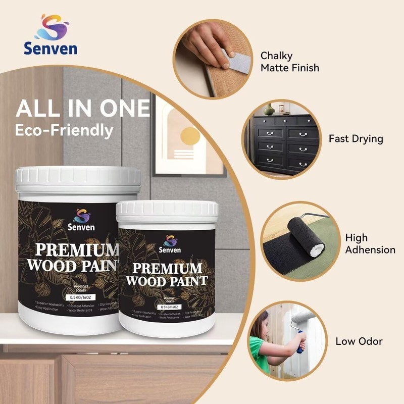 • NO PRIMER NEEDED: SENVEN wood furniture paint sticks well to wood without a primer, forming a protective film. The ideal paint for furniture, home decor, kitchen cabinets, upholstery, craft projects, and more. Widely applicable, it is ideal for repairing scratches, chips, and spots on various wooden surfaces such as furniture, cabinets, doors, tables, and dressers. Suitable for both interior and exterior use.