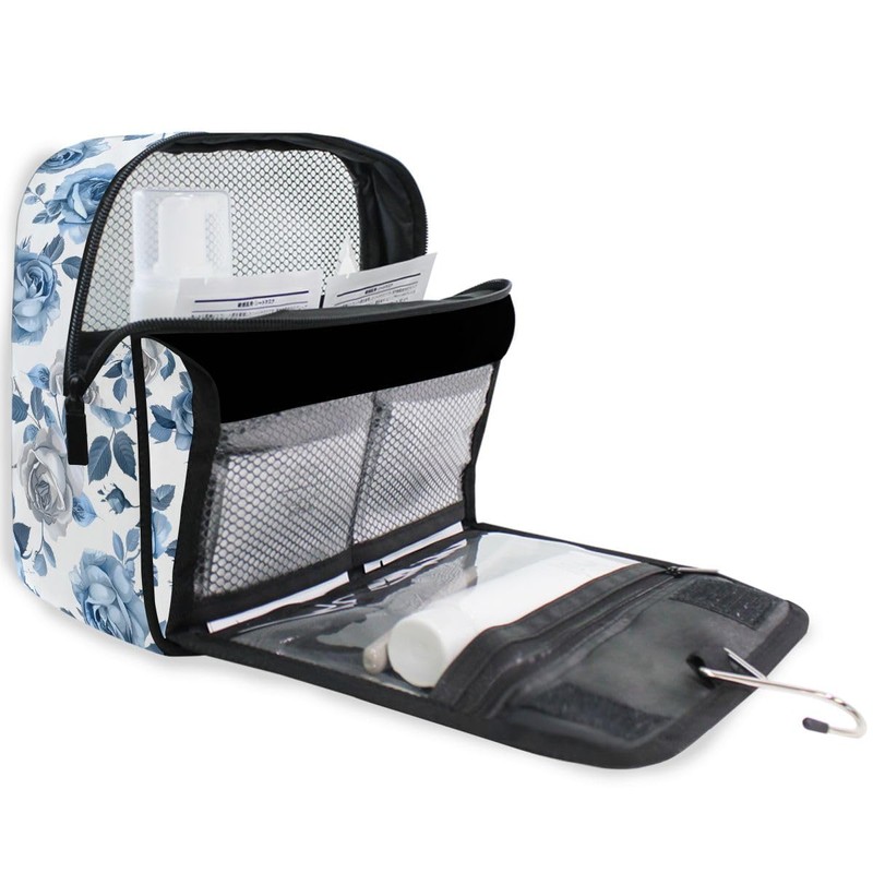 senya Hanging Travel Toiletry Bag Cute Kit Makeup Case Cosmetics Organizer for Men Women (Roses Blue White Pedals)