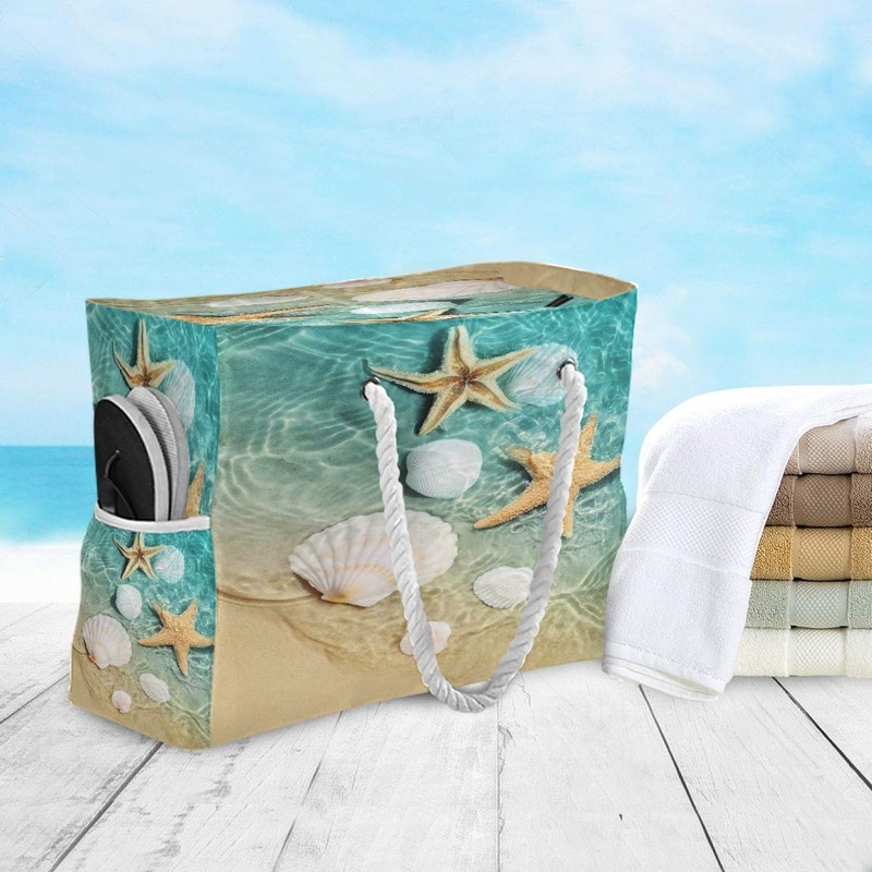 senya Large Beach Bags Totes Swim Canvas Tote Shoulder Bag Water Resistant Bags for Gym Travel Daily (Seashell on Beach)