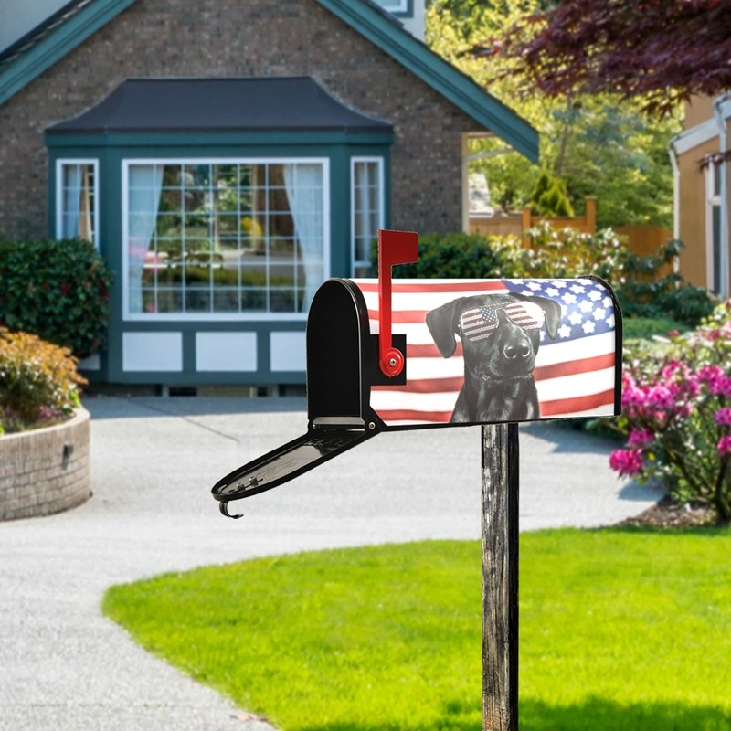 senya Mailbox Cover Magnetic for American Independence Day July 4th Standard Size, American Flag Star Black Lab Dog Letter Post Box Cover Home Garden Decoration