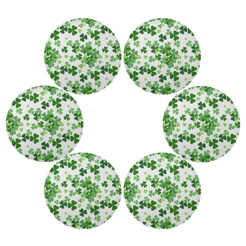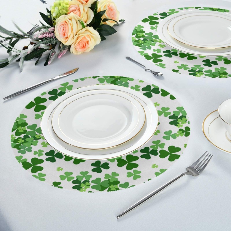 senya St. Patrick Day Clover Round Placemats Set of 6 for Dining Table Heat Insulation Non-Slip Washable Place mats ¡