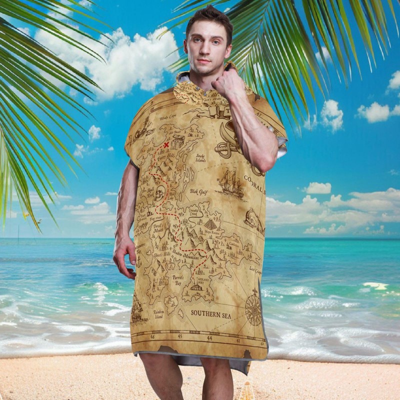 senya Surf Poncho Towel Hooded Beach Towel, Retro Antique Pirates Adventure Treasure Map Compass Swim Cover Up for Women Men Beach Pool Water Park