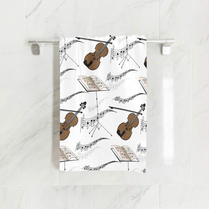 senya Violin with Music Notes Hand Towel Ultra Soft Luxury Towels for Bathroom 30"x15"