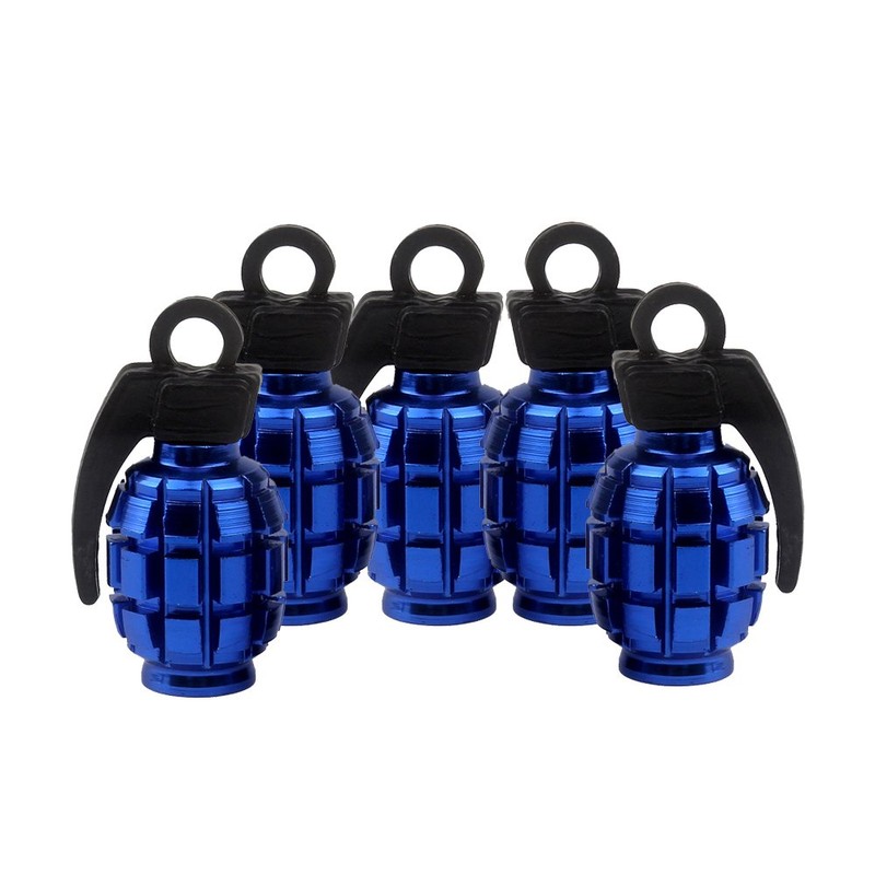 SENZEAL 5 x Aluminium Alloy Hand Grenade Style Universal Car Truck Motorcycle Wheel Tyre Valve Caps Tyre Air Valve Cover Blue