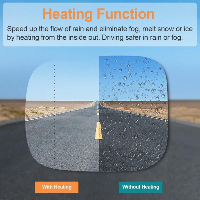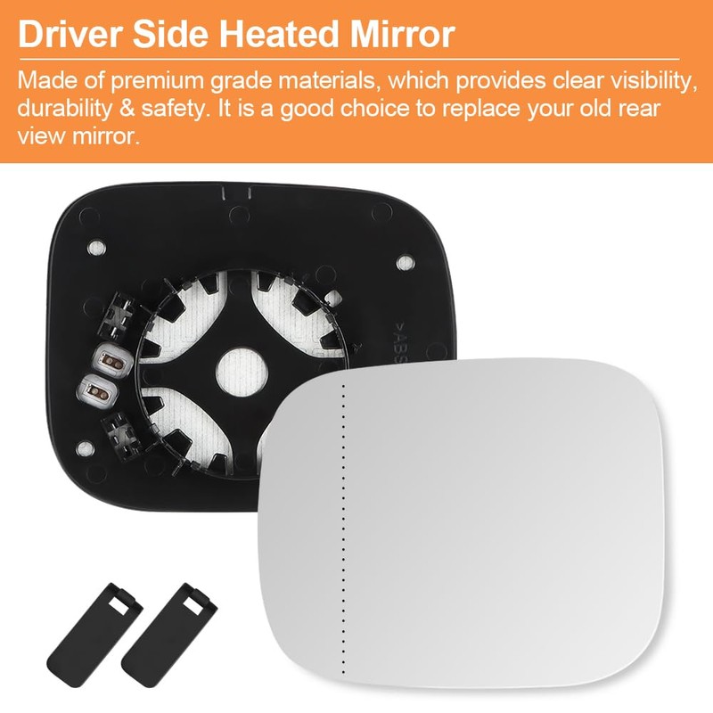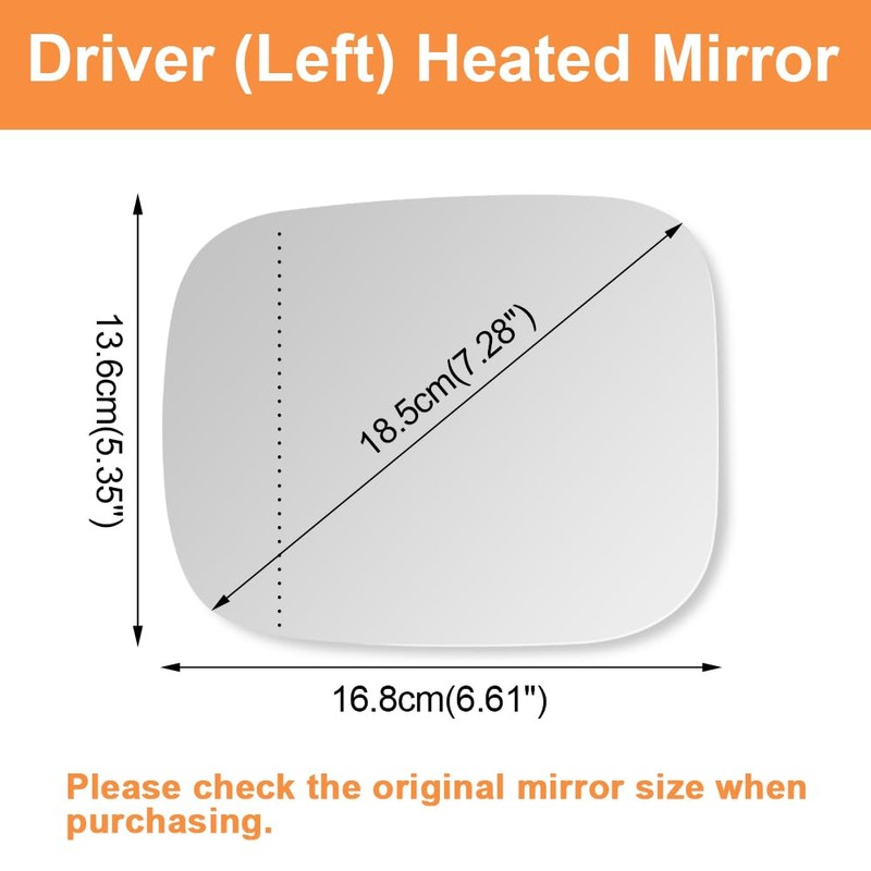 - HEATING FUNCTION: Provides you with clear view in rain or fog. This glass back of this driver side door mirror replacement is designed with heated function, to eliminate fog and melt snow or ice by heating from the inside out.