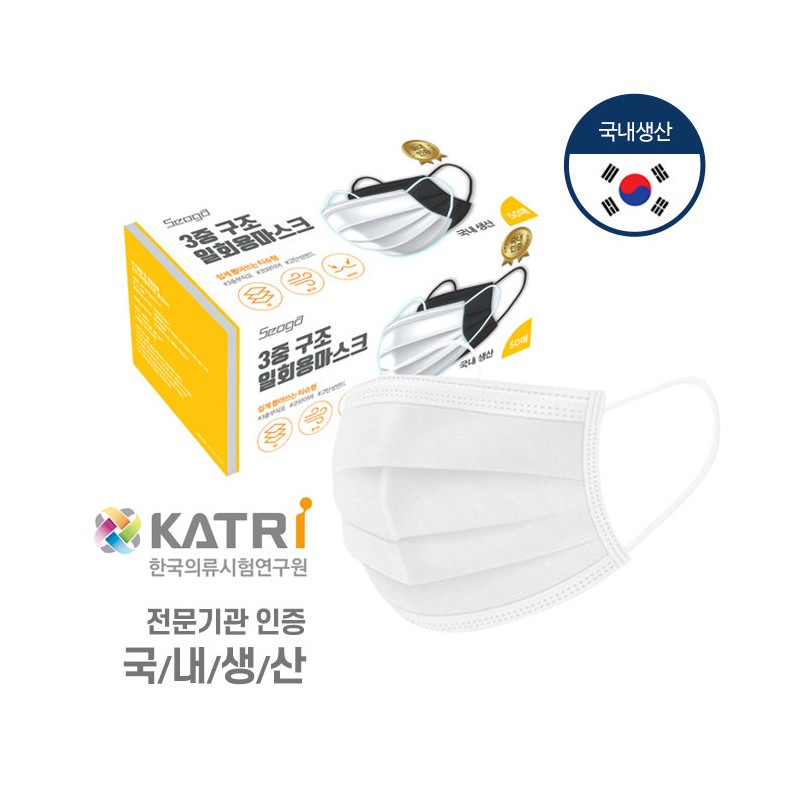 Seoga Domestic Seoga Disposable Mask 50 Sheets Meltblown (White) / 서가 국산 서가 일회용 마스크 50매 멜트블로운 (화이트)