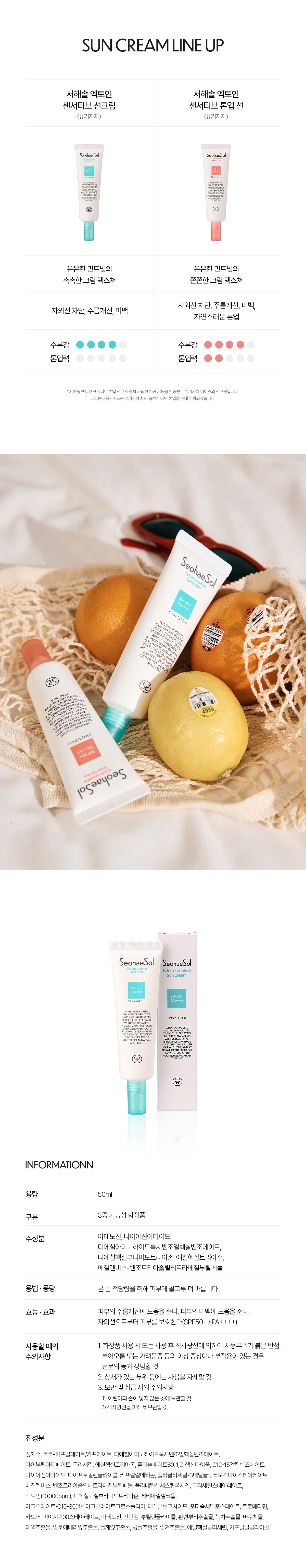 서해솔 엑토인 센시티브 선크림 50ml