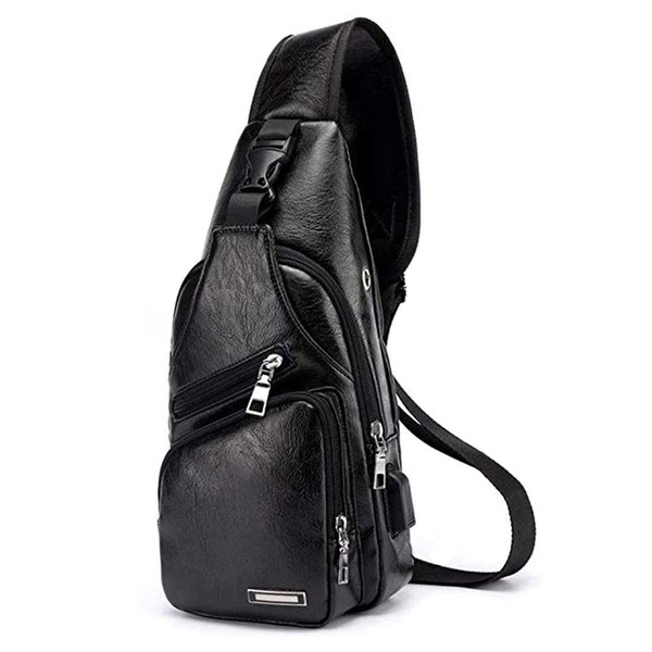 Seoky Rop Men's Leather Sling Bag Chest Crossbody Shoulder Bag with USB Charging Port Black