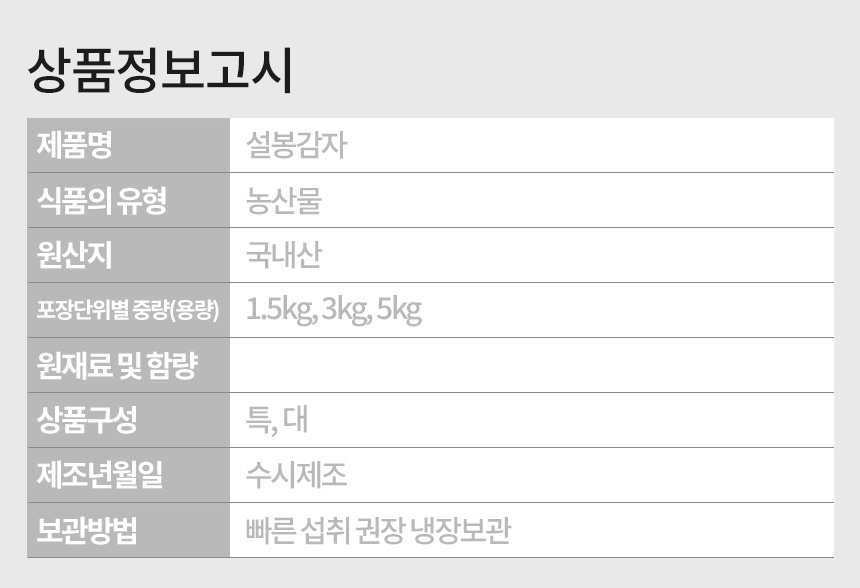 설봉감자 (대) 3kg