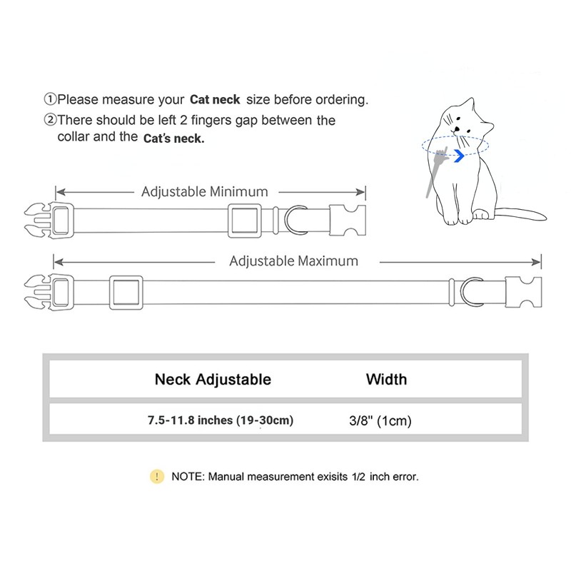 - 【Easy to Adjust】📏 With a length of 19-30 cm (7.5-11.8 inches) and a width of 1 cm (3/8 inches), our collar is suitable for most cats, small cats, kittens, and small puppies. Before making a purchase, be sure to measure your cat's neck size to ensure the perfect fit.