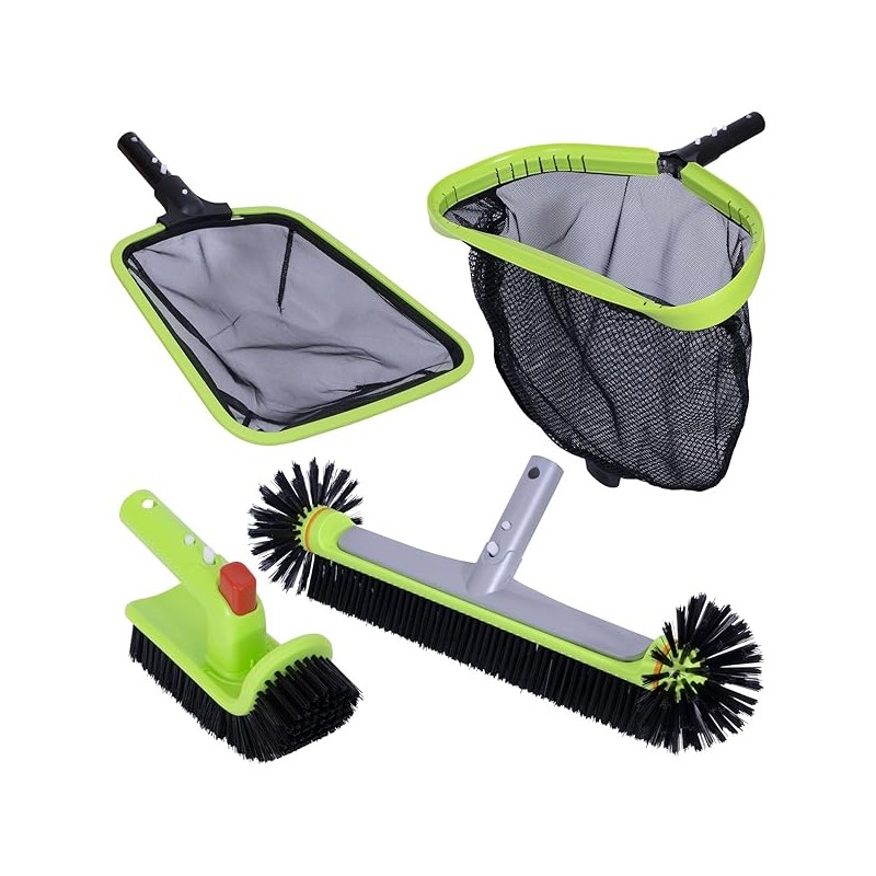 Sepetrel Deluxe Swimming Pool Cleaning Kit Including Professional Leaf Skimmer Net,Half-Depth Fine Mesh Net,17.5" Pool Brush Head & Hand Scrub Brush(NO Pole)