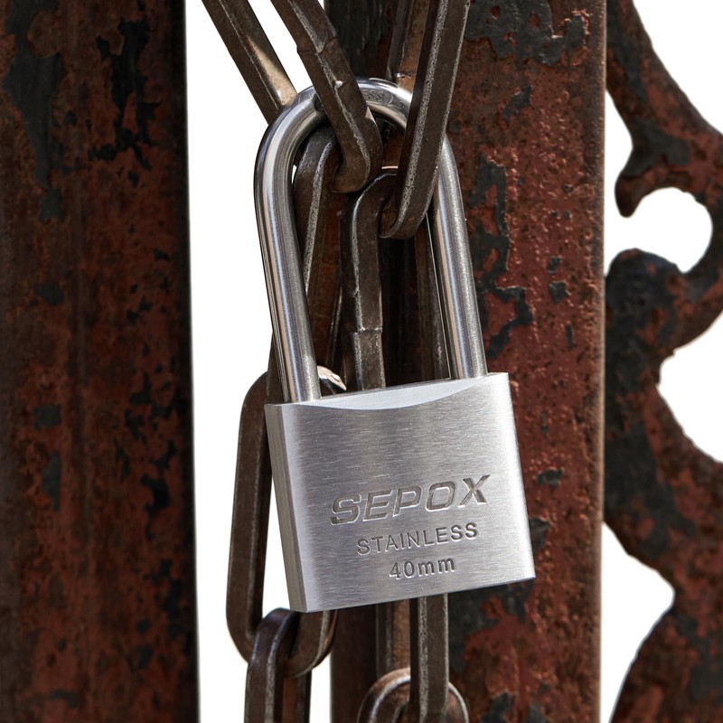 SEPOX Outdoor Padlock with Key Stainless Steel Lock Body and Long Shackle Waterproof 40mm Keyed Padlock Heavy Duty Padlock and Key Weatherproof for Gate Chain Shed Boat Marine