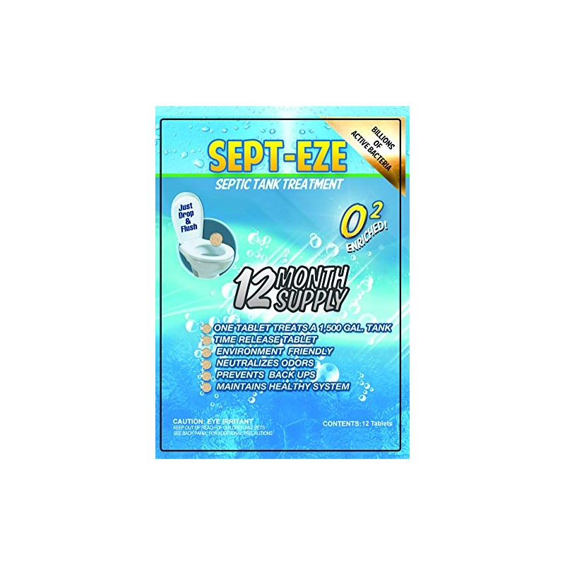 • Powerful, concentrated tablet adds beneficial bacteria, enzymes and OXYGEN to effectively treat , maintain and clean your septic tank