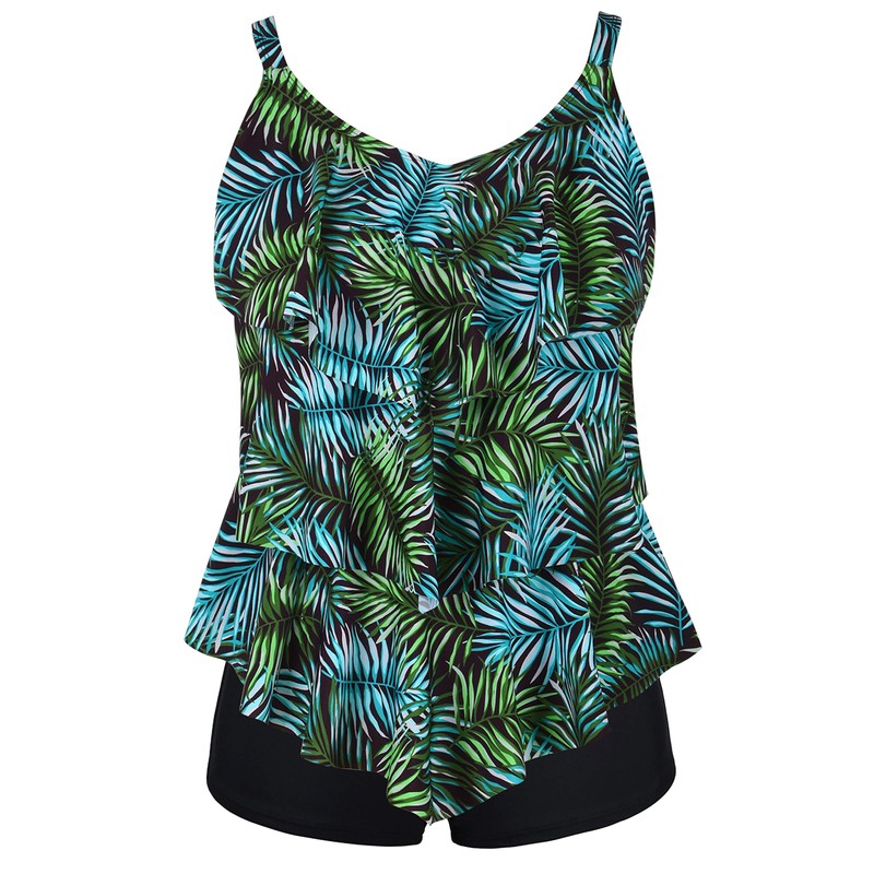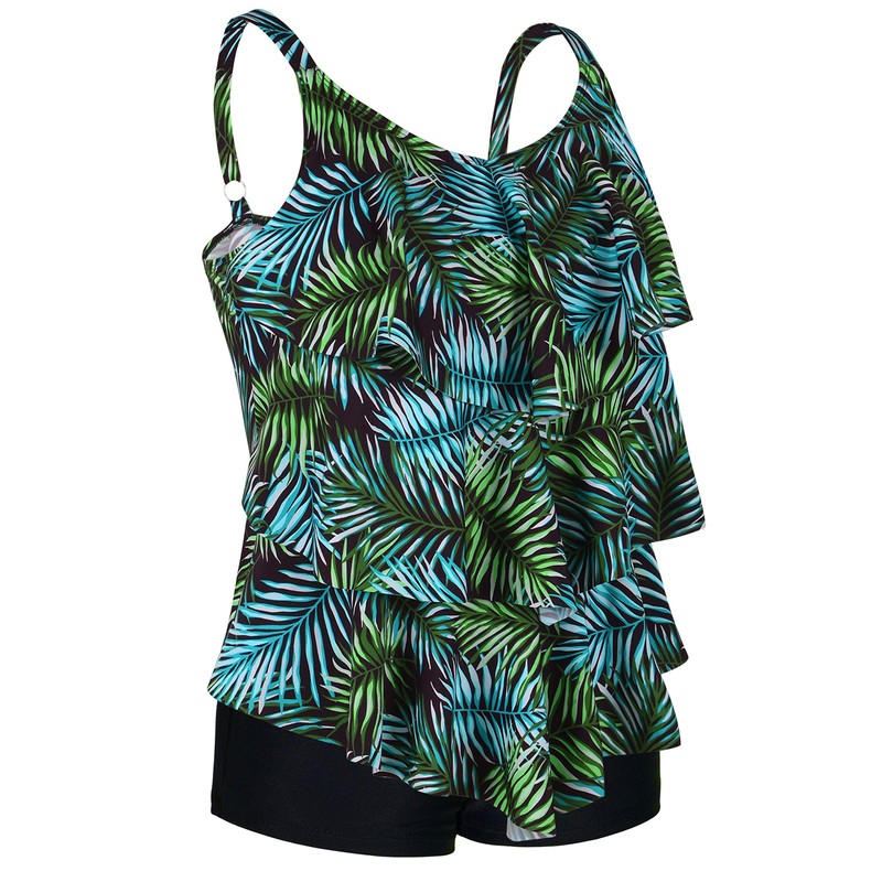 Septangle - Bañador para mujer, diseño de flores, dos piezas, Verde, 20 Plus