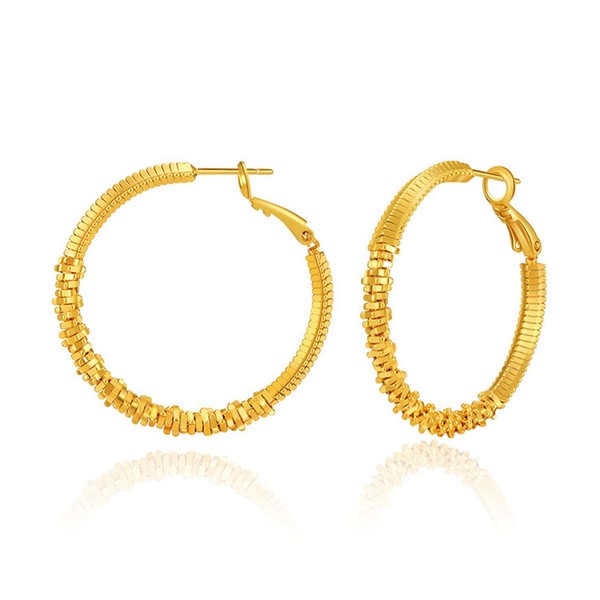 - Please refer to the size chart in the product images for dimensions. 18K Gold plated over high quality brass to ensure a long without faded, that is nickel free, lead free, and hypoallergenic. The lightweight design allows for all day comfort, the earrings offer an elegant look that you can wear it with confidence.