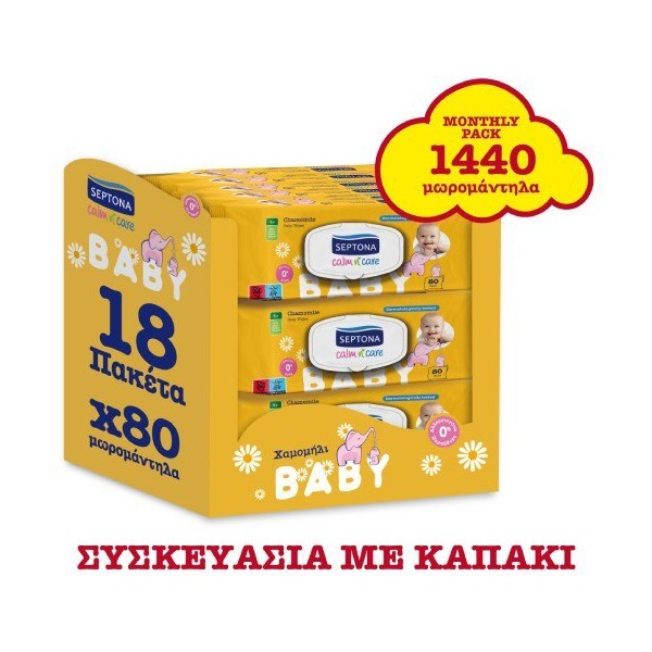 SEPTONA calm n care chamomile baby wipes are ideal for the daily care of the delicate infant skin, from day 1. Their pure formula with chamomile flower water and vitamin E gently cleanses your baby's skin, while providing natural care and freshness.