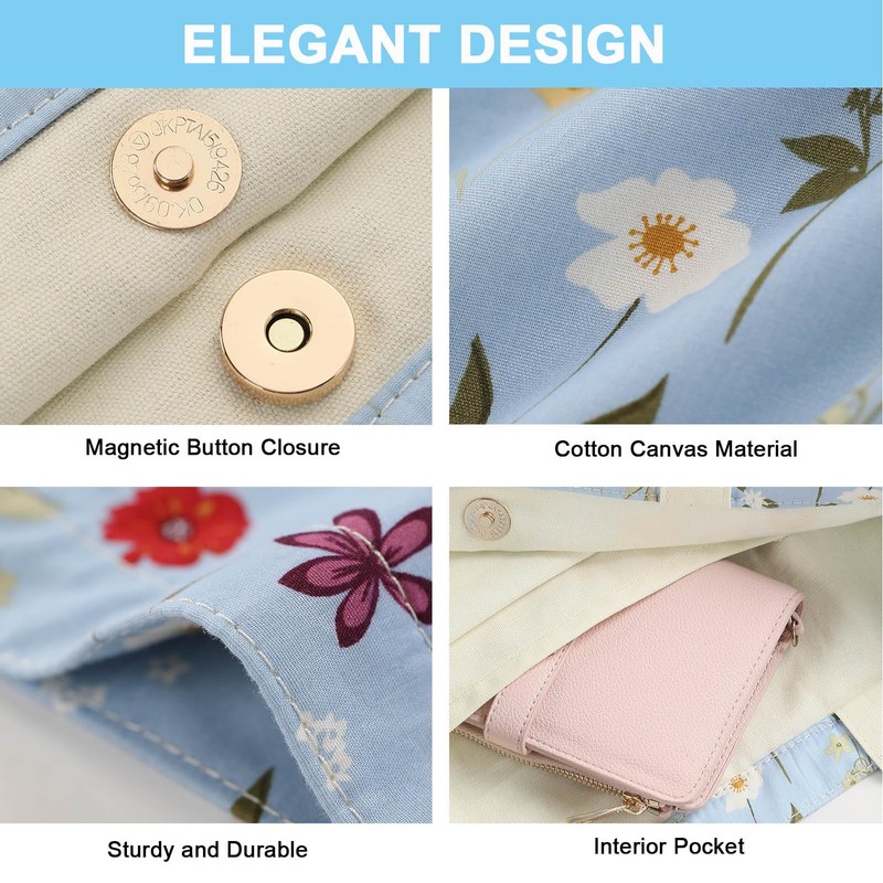 - ✔️ ELEGANT DESIGN - Elevate your style with our aesthetically pleasing tote bag featuring captivating flower prints. This design touch adds a sense of aesthetics and sophistication, making it suitable for diverse occasions.