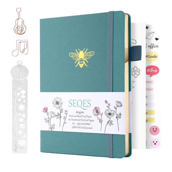 SeQeS Dotted Journal - A5 Dot Grid Notebook with pages number,160gsm Bleedproof Paper,Silver Edge,Bullet Journals, and journaling…