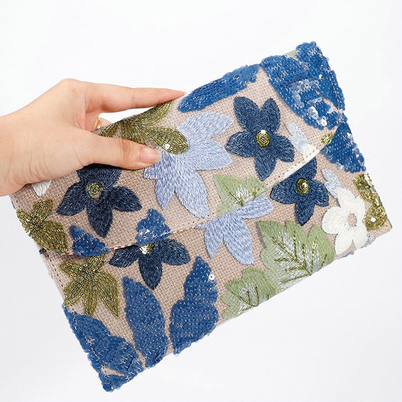 - Chic and Stylish: Elevate your evening ensemble with this stunning sequin embroidered floral clutch purse for women. Designed to dazzle, this beaded envelope-style bag features a beautiful floral pattern and shimmering blue tones—perfect for weddings, cocktail parties, and other formal events