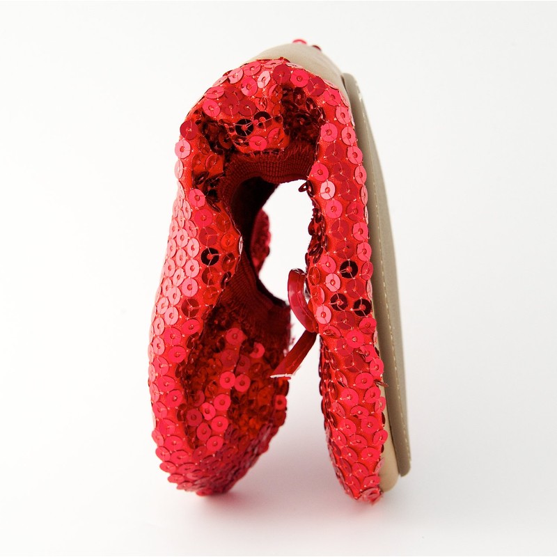 Sequin Sparkle Foldable Portable Shoes - Comfortable Women Ballet Flats That foldup and fit in Bag (6, Red)