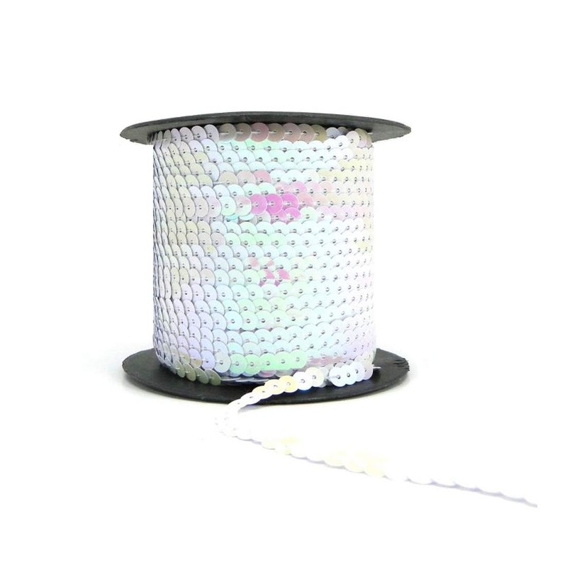 Sequin Trim Sequins Ribbon 6mm Strung Metallic Shiny Flat Sequins Paillette Spangle Sequin String for Embellishment Sewing Arts Crafts Fancy Dress Decoration (AB White - 90 Meters)