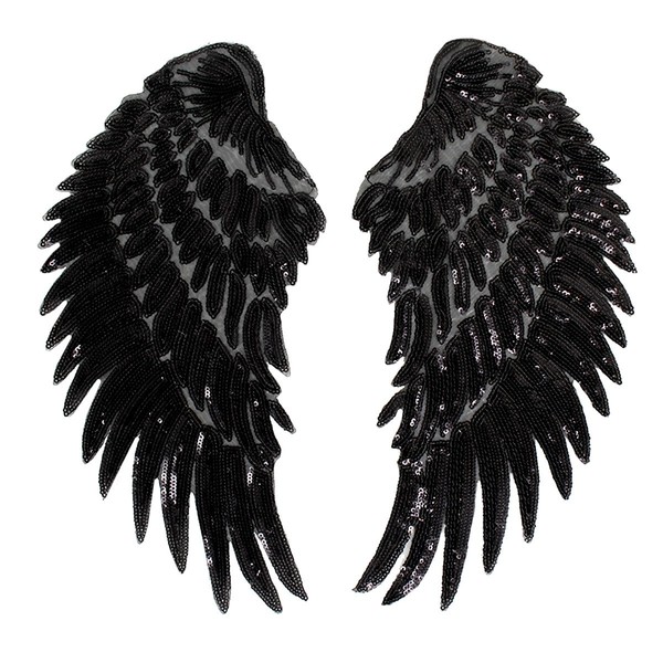 Sequins Large Angel Wings Patches Decorative Iron on Sew on Big Patches for Jacket Jeans DIY, Black
