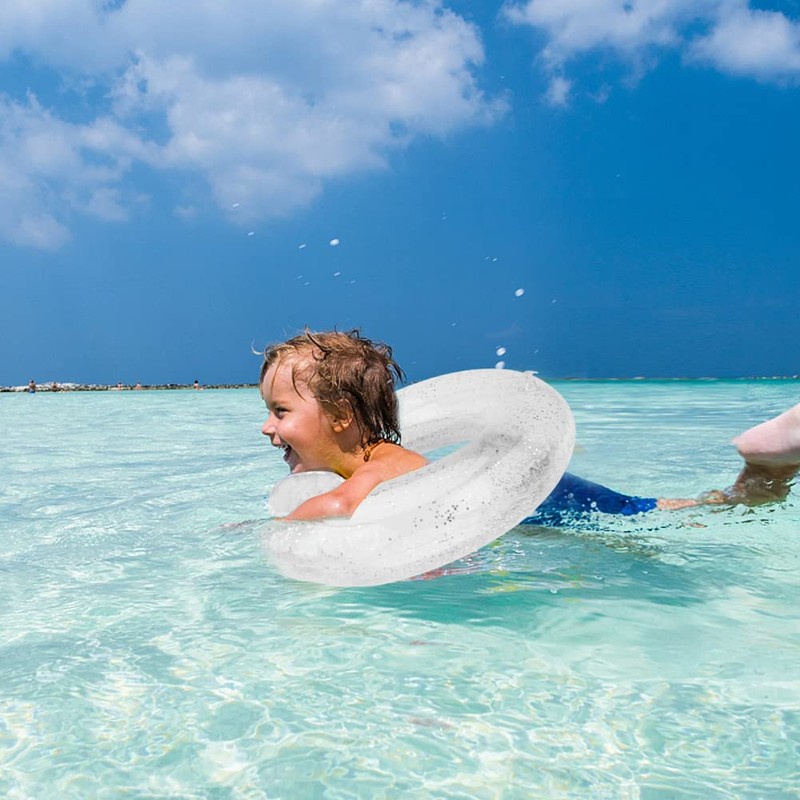 Quality material: Our swimming ring is made of high-quality PVC with safety valve, so you can use it with confidence. The sequins on the inside of the swimming ring make it more visible in the pool, making it safer for children to swim.
