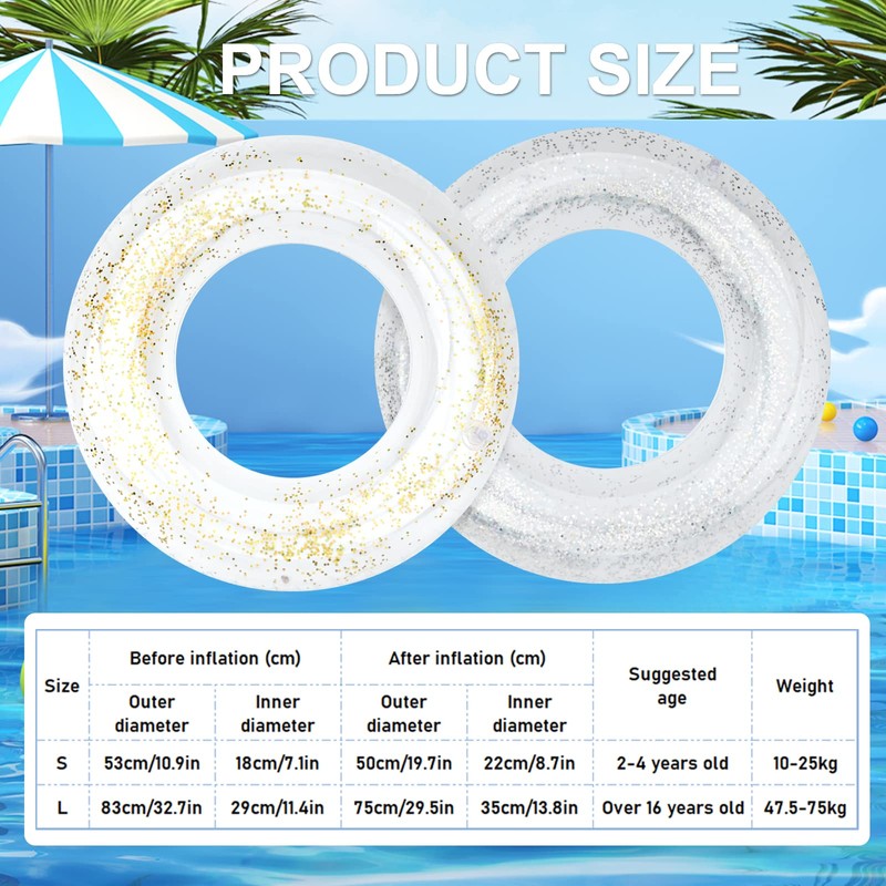 - Swimming ring size: you will receive a beautiful swimming ring that will bring you a perfect summer pool experience. Transparent swimming ring has two sizes for you to choose, suitable for children aged 2-5 years and teenagers and adults over 12 years old, the specific size can be referred to the picture