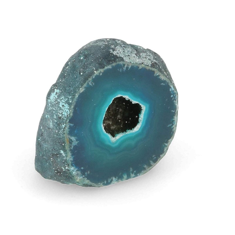 - Choose your colour. Each geode measures approx. 2-3 ". Available in blue, pink, green/teal and purple. Agate Geodes are ancient volcanic bubbles which have partially filled with crystals, leaving a beautiful crystalline hollow centre. Agate is thought to help with effective communications skills and is believed to be good for the nervous system. Every mineral is unique, no two are the same.