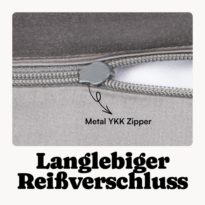 - Durable zip for your side sleeper pillow cover 40 x 145. The robust, concealed YKK zip ensures elegance and durability. YKK zips are known to last a long time, making them perfect as cushion covers, sofa cushion covers or as decorative cushions.
