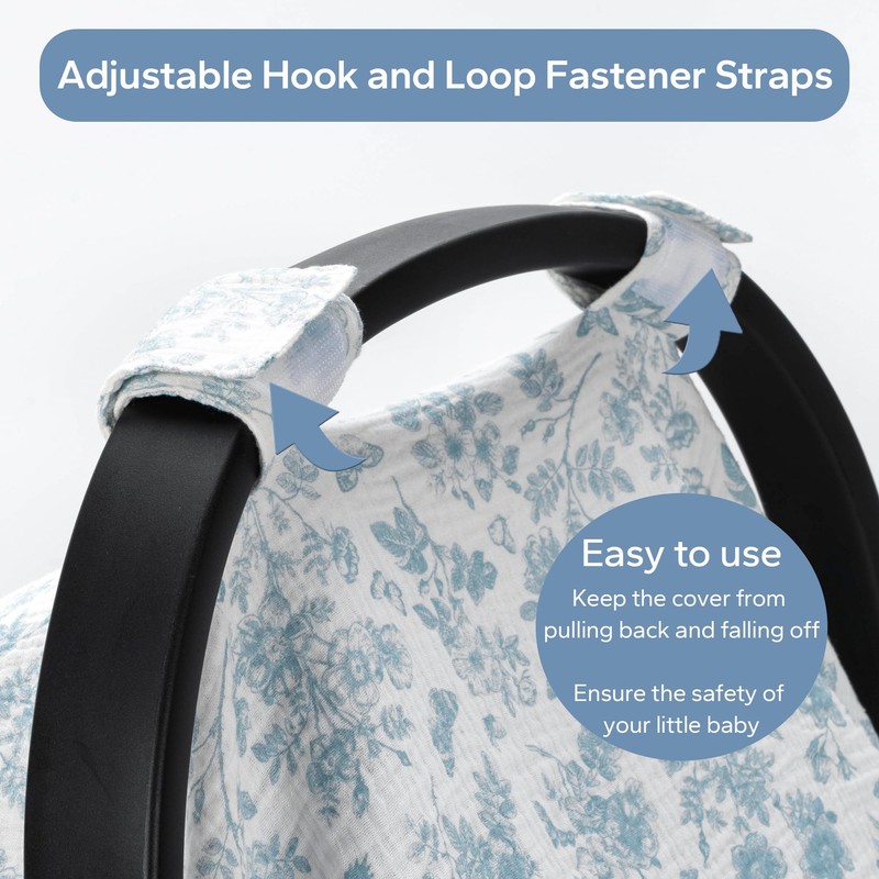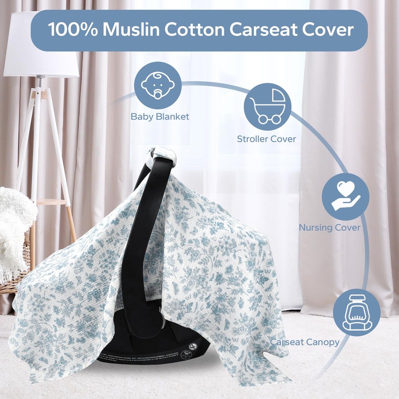 - 【Lightweight Breathable Muslin Carseat Cover】Our infant carseat canopy is made of 100% cotton. It is highly absorbent and draws moisture away from the body, allows for airflow when draping over the carseat or stroller, help regulate body heat and making sure your baby gets enough air and is not over-heating.