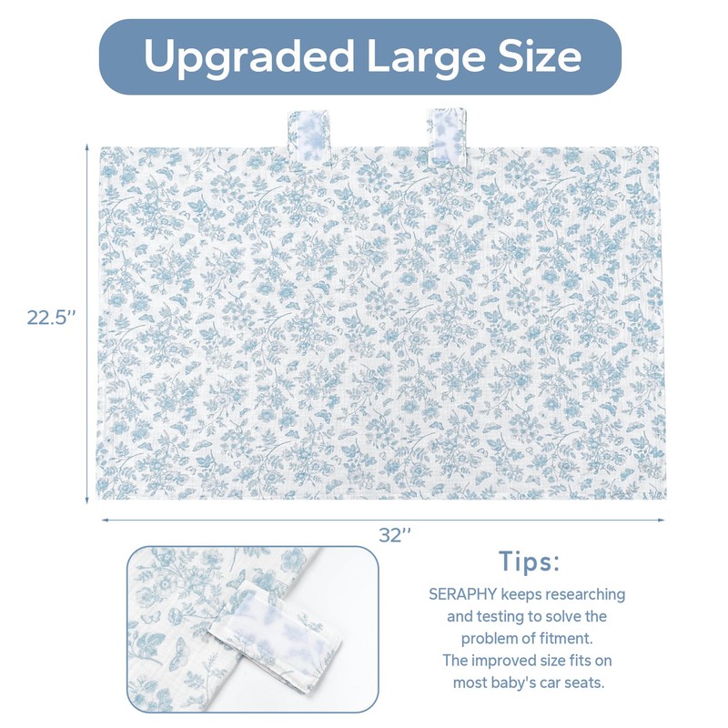 SERAPHY 100% Muslin Cotton Car Seat Covers for Babies, Universal Baby Car Seat Cover, Breathable Muslin Carseat Cover Canopies for Boys and Girls, Soft Infant Car Seat Cover for Summer — Blue Flowers