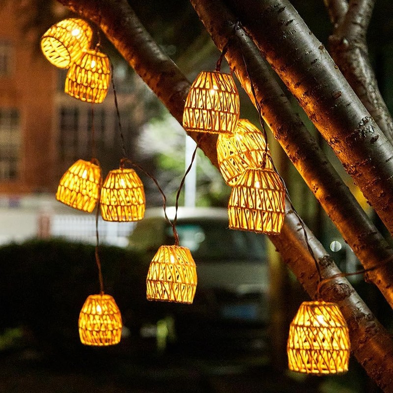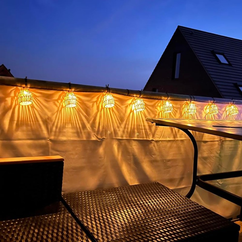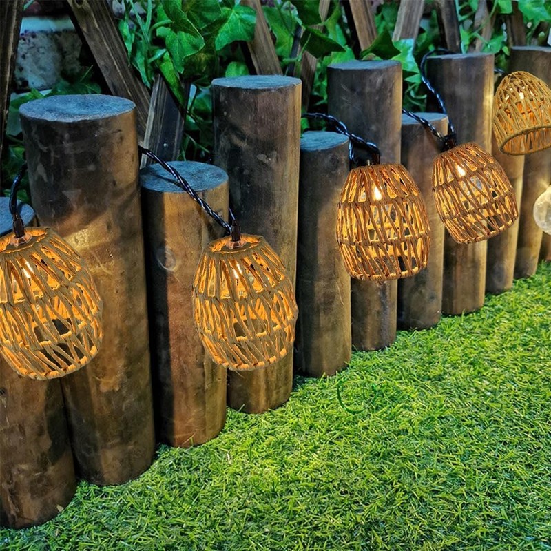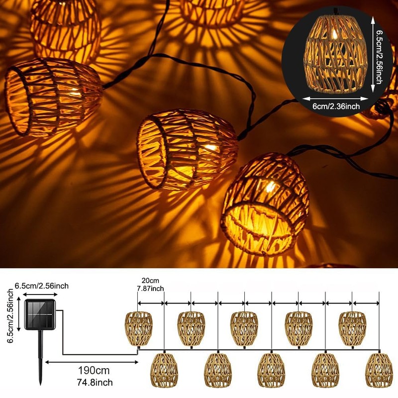 SERBASIC Solar Outdoor Patio String Lights,13FT 10Led Rattan Style Lantern String Lights,Solar Fairy Lights Boho Fairy Lights for Patio Pergola Garden Party Backyard
