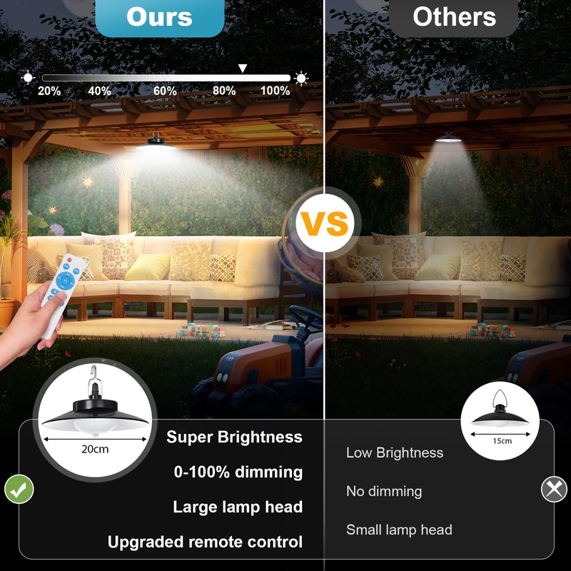- 【5 Lighting Modes with Motion Sensor】Our outdoor solar pendant light has 5 lighting modes: MODE 1: Dim to Bright with motion at night. MODE 2: Off to Bright with motion at night. MODE 3: Constant ON at night. MODE 4: Off to Bright with motion in the Daytime. MODE 5: All Day Lighting,automatically switches to mode 4 when the battery is below 60%. (NOTE:Body sensing distance of 2m)