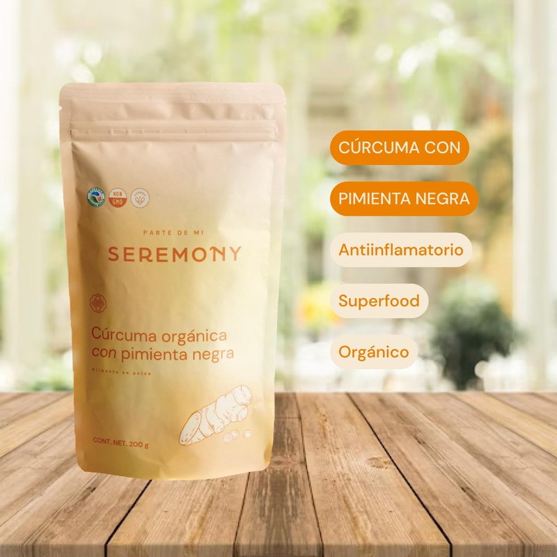 SEREMONY | Cúrcuma Orgánica Con Pimienta Negra 100% Natural | 200 g | Superfood | SEREMONY | Organic Turmeric With Black Pepper
