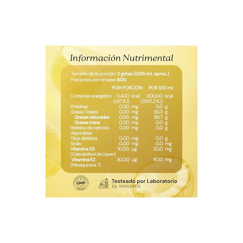 SEREMONY - Vitamina D3 K2 Con MCT Oil - Aceite de Coco Orgnico - Liposomal -400 IU por gota - 600 porciones - 30 ml - Lquido en Gotas - Suplementos