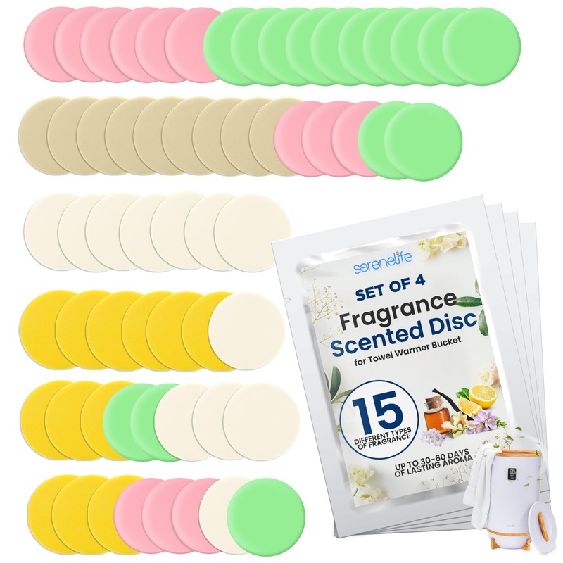 SereneLife 15 Fragrant Scented Discs - Eco-Friendly, Long-Lasting Air Fresheners for Home and Car - Fits Towel Warmer Bucket - Compostable - 4 PACK, 60 Discs