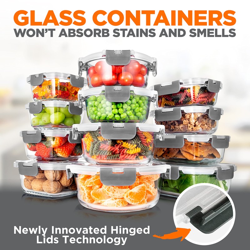 - EASY TO CLEAN & STORE - Dishwasher-safe glass containers make cleanup a breeze, while the stackable design saves space in your kitchen. The removable gasket in the hinged lids also allows for thorough cleaning, ensuring long-term use.